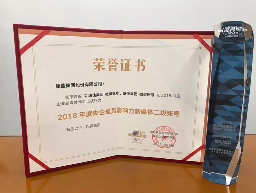 ? 今年,國資委新聞中心聯合清華大學新聞研究中心、清博大數據、中國青年報、中國經濟網推出2018年“中央企業二級賬號新媒體指數榜”,收集、分析了2018年度近500個中央企業二級新媒體賬號的基礎數據,對企業微信運營和微博運營的實際績效和影響力進行專業性考量。康佳集團官方微博、微信賬號被國資委新聞中心評選為“2018年度央企最具影響力新媒體二級賬號”,對此我們深感榮幸與自豪。