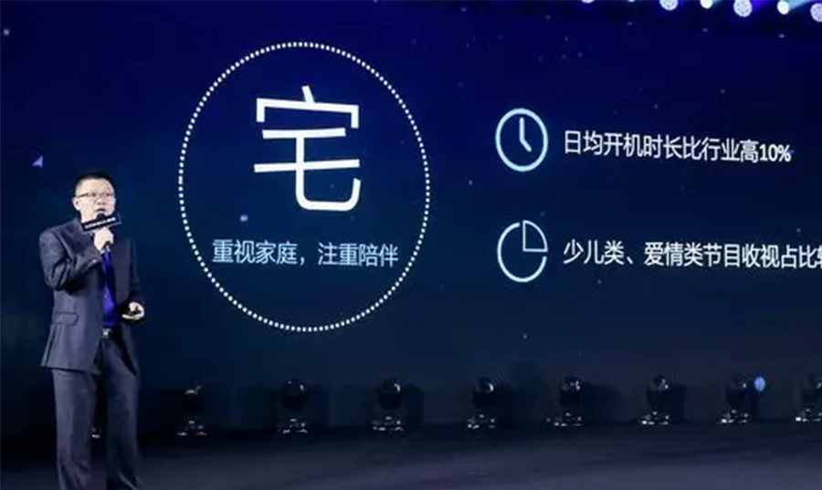 ? 周波副總經(jīng)理首先以“宅”字作為大會(huì)的開場(chǎng),宅是一種互聯(lián)網(wǎng)形式的自嘲,康佳用戶同時(shí)也具備“宅”的屬性,通過(guò)用戶行為分析,康佳智能電視日均開機(jī)時(shí)長(zhǎng)比行業(yè)水平高10%,尤其是少兒類、愛情類節(jié)目收視占比較高,這正說(shuō)明了康佳用戶更加重視家庭,注重陪伴。