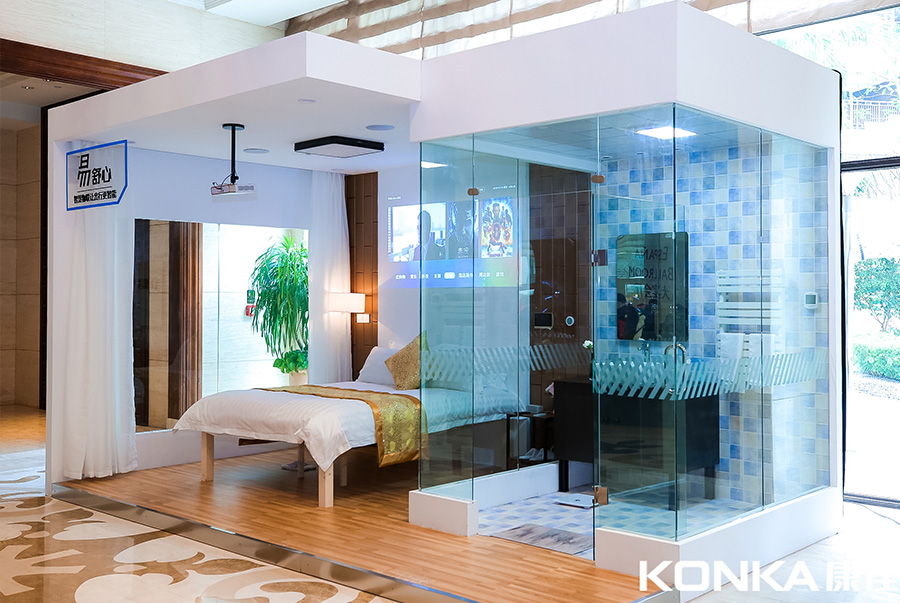 ? 以康佳為例,其智慧酒店秉持“智能體驗+暖心服務”初衷,將操作成本降到最低。在易舒心-商旅場景體驗區,筆者親身感受到一次舒服的入住體驗。當筆者打開房門,房間自動打開“ON 模式”,電視、燈光、空調、窗簾、空氣凈化器等都開始自動工作。