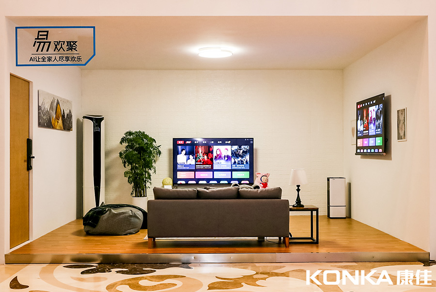 ? 在現場,筆者首先選擇的是易歡聚-家庭場景這一體驗區。據了解,康佳從智能電視的系統入手,為其融入人工智能技術,進而將智能電視置于一個更廣泛的智慧家庭生態中。