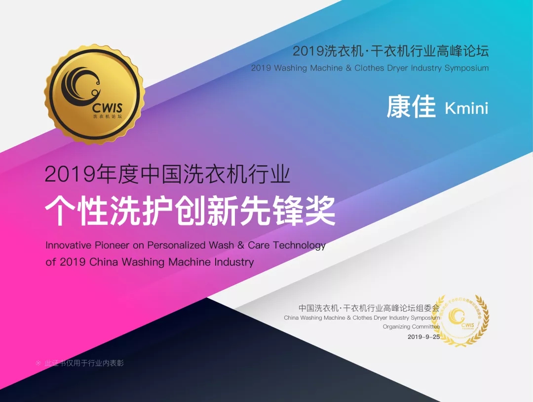 ? Kmini在此次行業(yè)高峰論壇中獲得“2019年中國洗衣機行業(yè)——個性洗護創(chuàng)新先鋒獎”是對康佳洗衣機長期耕耘,大膽革新的肯定與認可,Kmini已然成為中國個性洗護領域的先驅(qū)者。
