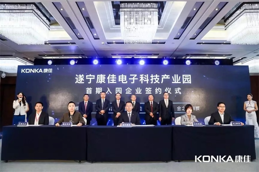 2019年10月28日上午,遂寧康佳電子科技產業園首期入園企業簽約儀式在遂寧舉行。遂寧市政府副市長陳伐、遂寧經濟技術開發區黨工委副書記、管委會主任李擁軍及市區相關部門負責人、集團聯席副總裁林洪藩、遂寧康佳產業園區開發有限公司總經理翁居榮、12家簽約企業和其他30家意向企業共同出席了本次簽約儀式。