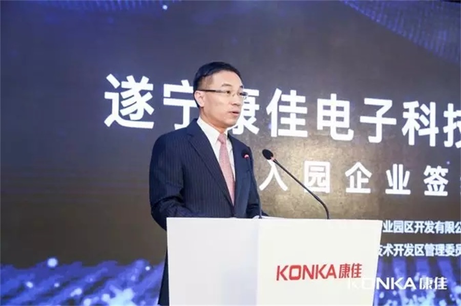 集團聯席副總裁林洪藩在致辭中感謝了遂寧市委市府、經開區黨工委和管委會對康佳集團的支持和關心,遂寧康佳電子科技產業園總投資額100億元,達產后實現銷售收入200億元,解決約2萬人就業,同時指出該項目是集團“科技+產業+園區”發展戰略、跨越發展的快速突破和快速落地實施的重要載體。林總表示我們將繼續堅持與遂寧政府、入園企業精誠協作、互利共贏、協調發展的原則,高起點、高標準落實企業項目投資合作協議內容,全面推進簽約企業項目實施、建設、運營,為建設遂寧和助力企業騰飛做出更大的貢獻。