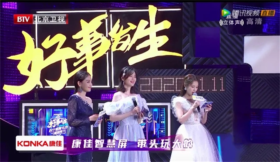 11月10日晚,康佳集團特約贊助的北京衛視蘇寧易購1111超級秀震撼上演,關曉彤、鄭爽、葛優、陳思誠、沈騰、馬麗、蔡國慶、李玟、伊能靜、黃圣依、潘瑋柏、黃子韜、時代少年團等30多位巨星鼎力加盟,群星閃耀燃爆全場。此次超級秀直播不僅有春晚級別的精彩舞臺呈現,更融入了時下流行的帶貨玩法,將“電視綜藝+直播+全場景互動”緊密結合,為觀眾帶來極致的購物體驗。