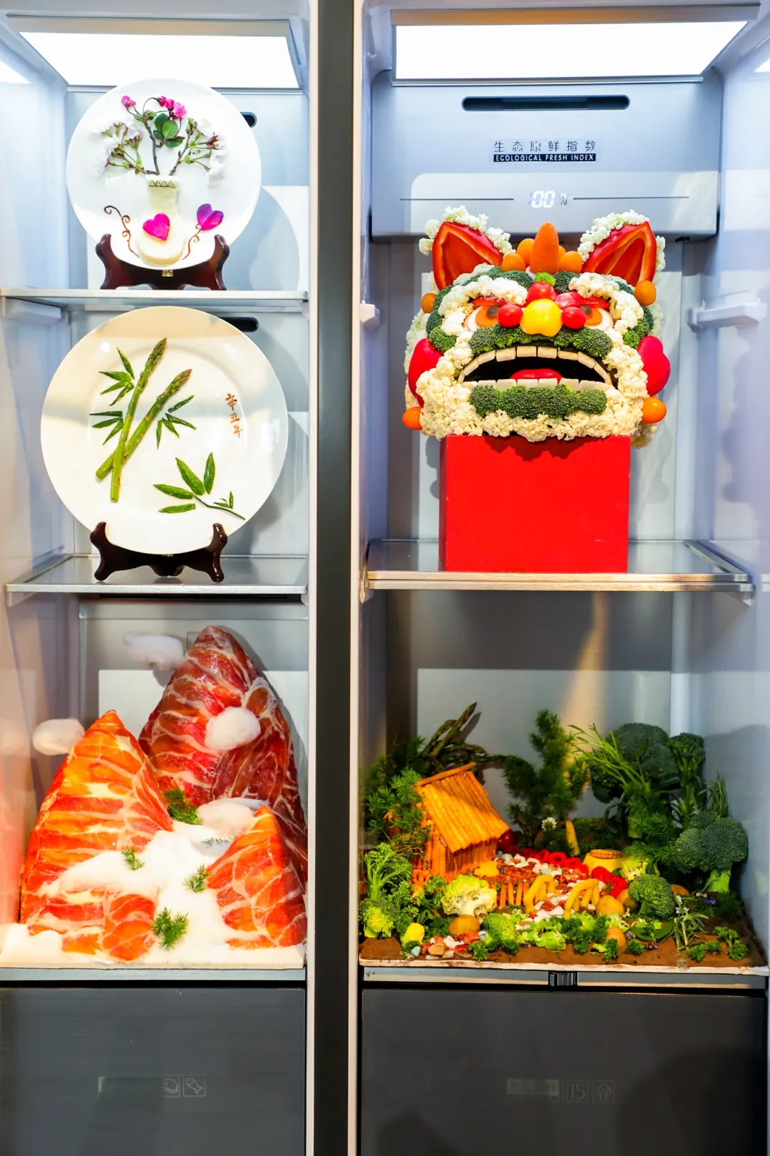 ? 為了生動展現康佳15天生態原鮮冰箱的獨特功能,康佳集團邀請米其林大廚現場烹飪五國頂級牛肉,打造“頂牛宴”。經過康佳冰箱冷凍后的牛肉,解凍無血水,口感依然保持原鮮,收獲參展觀眾一致好評。此外,“冰箱里的神鮮畫展”活動,利用冰箱的卓越保鮮能力,將來自全國各地的新鮮食材制成的趣味畫作,進行非常規展覽,讓觀眾更加直觀感受新鮮食材帶來的色彩沖擊,在沉浸式體驗中體會康佳15天生態原鮮冰箱的非凡保鮮力。