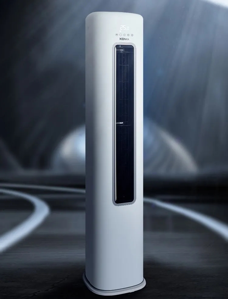 康佳藝術家空調KFR-72LW/HC1采用360°圓柱形整體一體化機身設計,美觀大方,又節省占地面積。搭載迭代升級后的第四代自清潔技術,通過凝露吸塵、迅速結霜、化霜沖洗、高溫烘干四大步驟,輕松解決空調集塵問題,讓吹出來的風既健康又干凈。
